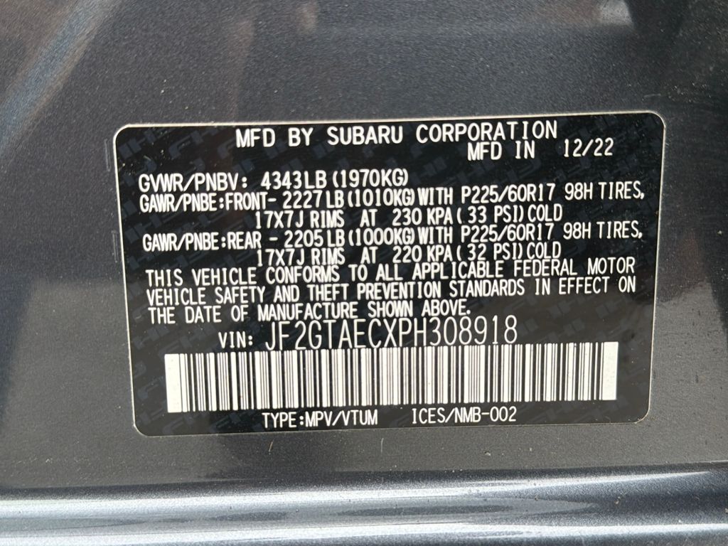 Subaru Certified Pre-Owned, New Tires!, New Brakes!, EyeSight Driver-Assist System, Power Moonroof, X-Mode: Traction Management System, Apple CarPlay & Android Auto, SiriusXM Radio, All-Weather Package (Heated Seats, Heated Mirrors, Wiper De-Icer), Blind Spot Detection (BSD), Bluetooth, Rear Vision Camera, Roof Rails, Auto-Dim Rear View Mirror w/ Homelink, Adaptive Cruise Control, High Beam Assist (HBA), Auto Climate Control, Push-Button Start, 6-Way Power Driver's Seat, Fog Lights, Exterior Auto Dimming Mirrors, Rear Bumper Cover, 4-Wheel Disc Brakes, CD player, Four wheel independent suspension, Radio: Subaru STARLINK 6.5" Multimedia Plus System, Wheels: 17" x 7.0J Alum Alloy Blk w/Machine Finish.