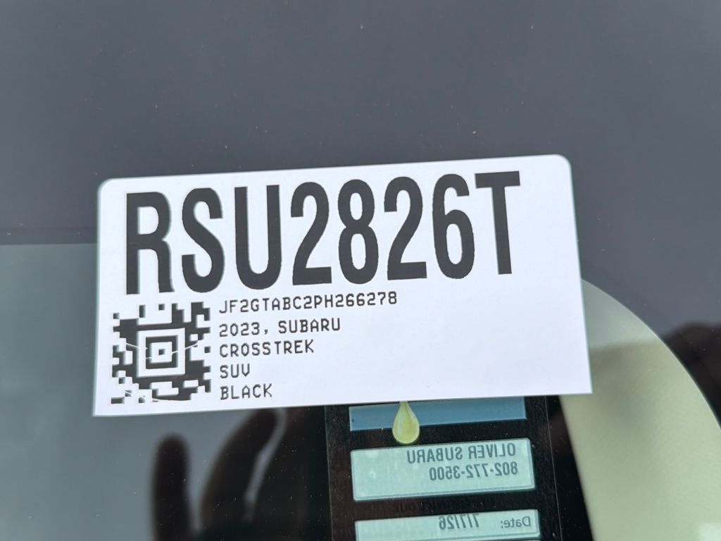 Oliver Subaru of Rutland is proud to present you with another True Market Priced Pre-Owned Vehicle. This 2023 Subaru Crosstrek Subaru Certified Pre-Owned is loaded with the following Factory Options: 4-Wheel Disc Brakes, Radio: Subaru STARLINK 6.5" Multimedia System, and Wheels: 17" x 7.0J Alum Alloy Blk w/Machine Finish Standard Model (CVT) (EyeSight System, High Grade Combination Meter w/Color LCD Display, Overhead Console Shower Light, Rear Seat Reminder, and Tire Pressure Monitoring System), Subaru Certified Pre-Owned Certified, 4-Wheel Disc Brakes, Radio: Subaru STARLINK 6.5" Multimedia System, Wheels: 17" x 7.0J Alum Alloy Blk w/Machine Finish, 3.90 Axle Ratio, 4 Speakers, ABS brakes, Air Conditioning, Alloy wheels, AM/FM radio, Anti-whiplash front head restraints, Automatic temperature control, Brake assist, Bumpers: body-color, Cloth Upholstery, Driver door bin, Driver vanity mirror, Dual front impact airbags, Dual front side impact airbags, Electronic Stability Control, Exterior Parking Camera Rear, Four wheel independent suspension, Front anti-roll bar, Front Bucket Seats, Front Center Armrest, Front reading lights, Illuminated entry, Knee airbag, Low tire pressure warning, Occupant sensing airbag, Outside temperature display, Overhead airbag, Overhead console, Panic alarm, Passenger door bin, Passenger vanity mirror, Power door mirrors, Power steering, Power windows, Radio data system, Rear anti-roll bar, Rear window defroster, Rear window wiper, Remote keyless entry, Security system, Speed control, Speed-sensing steering, Split folding rear seat, Spoiler, STARLINK/Apple CarPlay/Android Auto, Steering wheel mounted audio controls, Tachometer, Telescoping steering wheel, Tilt steering wheel, Traction control, Trip computer, and Variably intermittent wipers!!