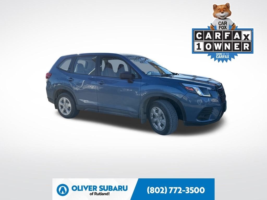 Oliver Subaru of Rutland is proud to present you with another True Market Priced Pre-Owned Vehicle. This 2023 Subaru Forester Subaru Certified Pre-Owned is loaded with the following Factory Options: 4-Wheel Disc Brakes, CD player, Radio: Subaru Starlink 6.5" Multimedia Plus System, and Wheels: 17" x 7.0 J Steel w/Silver Wheel Cover Standard Model, Subaru Certified Pre-Owned Certified, 4-Wheel Disc Brakes, CD player, Radio: Subaru Starlink 6.5" Multimedia Plus System, Wheels: 17" x 7.0 J Steel w/Silver Wheel Cover, 3.70 Axle Ratio, 4 Speakers, ABS brakes, Air Conditioning, AM/FM radio: SiriusXM, Anti-whiplash front head restraints, Auto High-beam Headlights, Automatic temperature control, Brake assist, Bumpers: body-color, Cloth Upholstery, Driver door bin, Driver vanity mirror, Dual front impact airbags, Dual front side impact airbags, Electronic Stability Control, Exterior Parking Camera Rear, Four wheel independent suspension, Front anti-roll bar, Front Bucket Seats, Front Center Armrest, Front reading lights, Fully automatic headlights, Illuminated entry, Knee airbag, Low tire pressure warning, Occupant sensing airbag, Outside temperature display, Overhead airbag, Overhead console, Panic alarm, Passenger door bin, Passenger vanity mirror, Power door mirrors, Power steering, Power windows, Radio data system, Rear anti-roll bar, Rear window defroster, Rear window wiper, Remote keyless entry, Security system, Speed control, Speed-sensing steering, Split folding rear seat, STARLINK/Apple CarPlay/Android Auto, Steering wheel mounted audio controls, Tachometer, Telescoping steering wheel, Tilt steering wheel, Traction control, Trip computer, and Variably intermittent wipers!!