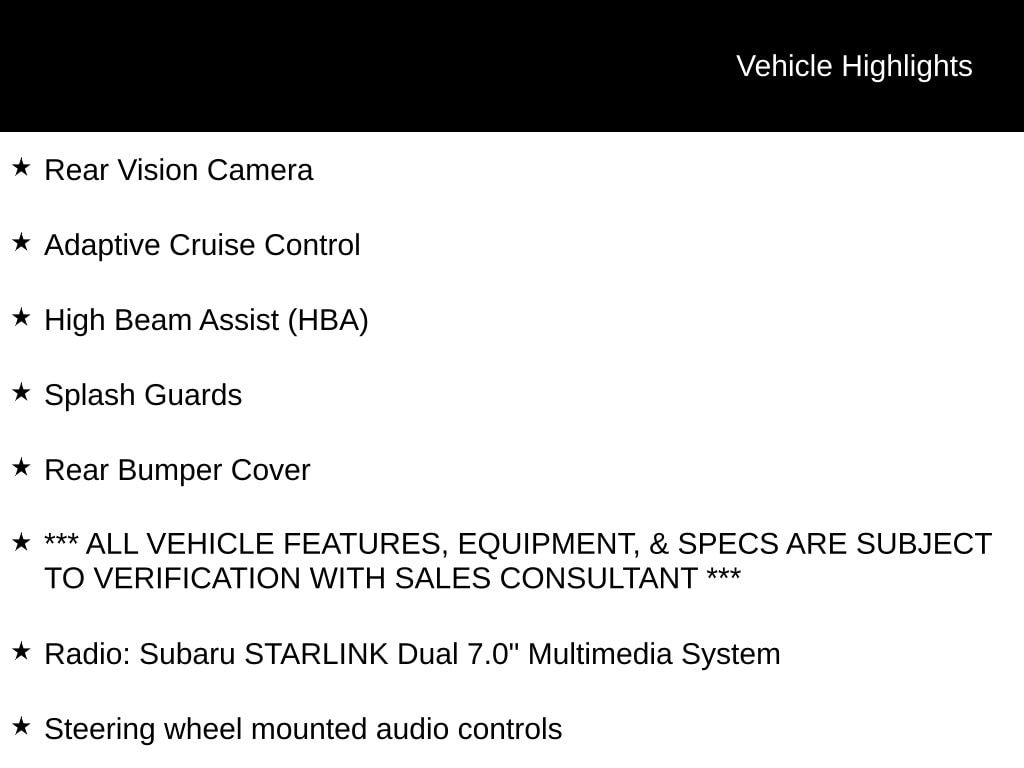 Subaru Certified Pre-Owned, New Brakes!, EyeSight Driver-Assist System, X-Mode: Traction Management System, LED Steering Responsive Headlights (SRH), Apple CarPlay & Android Auto, SI-DRIVE Engine Performance Management, Bluetooth, Rear Vision Camera, Adaptive Cruise Control, High Beam Assist (HBA), Splash Guards, Rear Bumper Cover, *** ALL VEHICLE FEATURES, EQUIPMENT, & SPECS ARE SUBJECT TO VERIFICATION WITH SALES CONSULTANT ***, 4-Wheel Disc Brakes, Four wheel independent suspension, Radio: Subaru STARLINK Dual 7.0" Multimedia System, Steering wheel mounted audio controls, Wheels: 17" x 7.0J Dark Gray Aluminum Alloy.