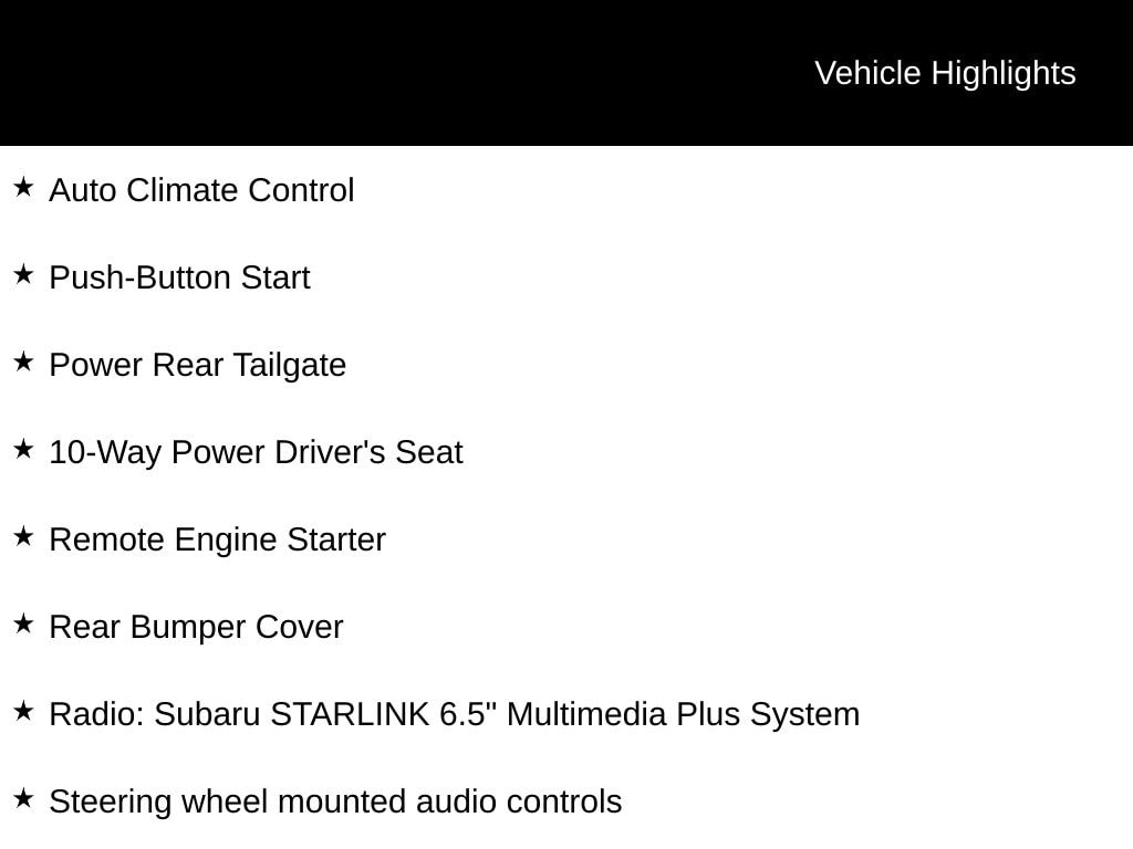 - Adaptive Cruise Control: EyeSight Adaptive Cruise Control