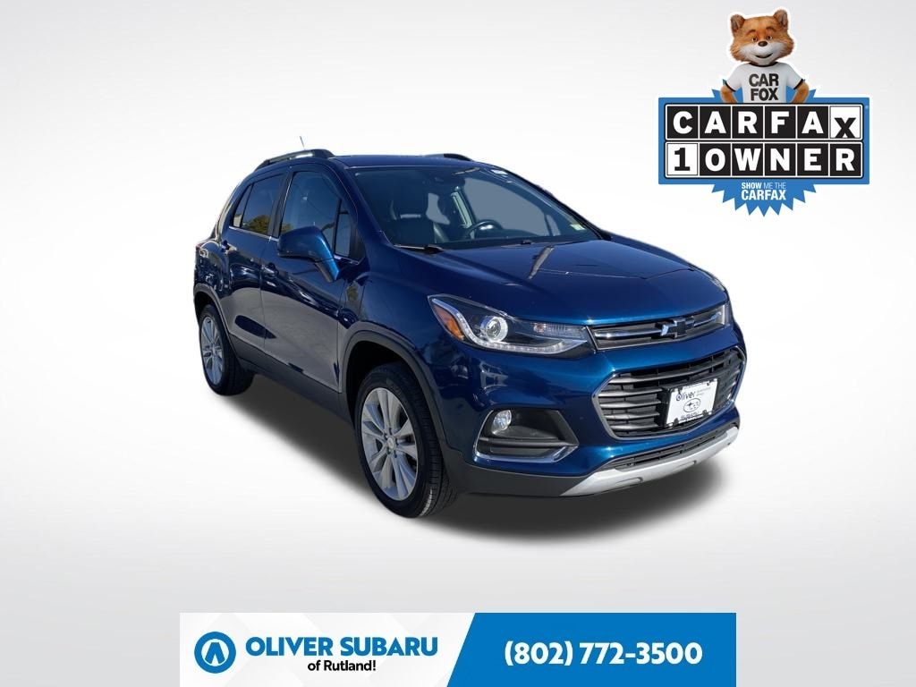 Oliver Subaru of Rutland is proud to present you with another True Market Priced Pre-Owned Vehicle. Transparent Pricing Of $ !! This 2020 Chevrolet Trax Premier is loaded with the following Factory Options: Preferred Equipment Group 1LZ (All-Wheel Drive Chassis), 18" Aluminum Wheels, 4-Wheel Disc Brakes, 6-Way Power Driver Seat Adjuster, 7 Speakers, AM/FM radio: SiriusXM, Apple CarPlay/Android Auto, Auto-dimming Rear-View mirror, Exterior Parking Camera Rear, Front fog lights, Fully automatic headlights, Heated door mirrors, Heated Driver & Front Passenger Seats, Leatherette Seat Trim, and Roof rack: rails only Preferred Equipment Group 1LZ (All-Wheel Drive Chassis), 18" Aluminum Wheels, 4-Wheel Disc Brakes, 6-Way Power Driver Seat Adjuster, 7 Speakers, AM/FM radio: SiriusXM, Apple CarPlay/Android Auto, Auto-dimming Rear-View mirror, Exterior Parking Camera Rear, Front fog lights, Fully automatic headlights, Heated door mirrors, Heated Driver & Front Passenger Seats, Leatherette Seat Trim, Roof rack: rails only, 2 USB Ports w/Auxiliary Input Jack, 2-Way Manual Front Passenger Seat Adjuster, 3.53 Final Drive Axle Ratio, ABS brakes, Air Conditioning, Alloy wheels, Bose Premium 7-Speaker Audio System Feature, Brake assist, Bumpers: body-color, Compass, Delay-off headlights, Driver door bin, Driver vanity mirror, Driver's Seat Mounted Armrest, Dual front impact airbags, Dual front side impact airbags, Electronic Stability Control, Emergency communication system: OnStar and Chevrolet connected services capable, Front anti-roll bar, Front Bucket Seats, Front Bucket Seats w/Driver Power Lumbar, Front License Plate Bracket, Front reading lights, Front wheel independent suspension, Heated front seats, Illuminated entry, Knee airbag, Low tire pressure warning, Occupant sensing airbag, Outside temperature display, Overhead airbag, Panic alarm, Passenger door bin, Passenger vanity mirror, Power door mirrors, Power driver seat, Power moonroof, Power steering, Power windows, Premium audio system: Chevrolet MyLink, Radio data system, Radio: Chevrolet Infotainment 3 System, Rear seat center armrest, Rear side impact airbag, Rear window defroster, Rear window wiper, Remote keyless entry, Security system, SiriusXM Radio, Speed control, Split folding rear seat, Spoiler, Steering wheel mounted audio controls, Tachometer, Telescoping steering wheel, Tilt steering wheel, Traction control, Trip computer, and Variably intermittent wipers!!