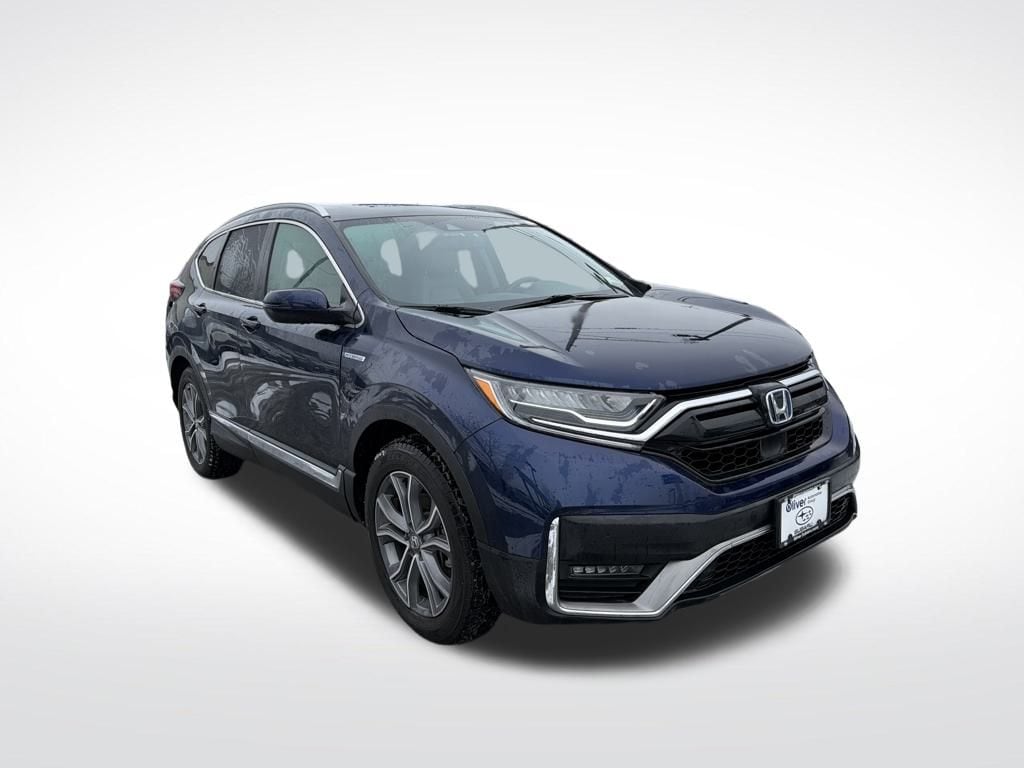 Oliver Subaru of Rutland is proud to present you with another True Market Priced Pre-Owned Vehicle. This 2022 Honda CR-V Hybrid Touring is loaded with the following Factory Options: 2.0L I4 DOHC 16V, 4-Wheel Disc Brakes, 9 Speakers, Adaptive Cruise Control: Adaptive Cruise Control (ACC) with Low-Speed Follow, Auto High-beam Headlights, Auto-dimming Rear-View mirror, Blind Spot Information (BSI) System warning, Exterior Parking Camera Rear, Forward collision: Collision Mitigation Braking System (CMBS) + FCW mitigation, Front fog lights, Garage door transmitter: HomeLink, Heated door mirrors, Heated Front Bucket Seats, Heated steering wheel, Leather Seat Trim, Navigation system: Honda Satellite-Linked Navigation System, Power Liftgate, Power moonroof, Power passenger seat, Rain sensing wipers, and Wheels: 19" Machine-Finished Alloy w/Gray Inserts 2.0L I4 DOHC 16V, 4-Wheel Disc Brakes, 9 Speakers, Adaptive Cruise Control: Adaptive Cruise Control (ACC) with Low-Speed Follow, Auto High-beam Headlights, Auto-dimming Rear-View mirror, Blind Spot Information (BSI) System warning, Exterior Parking Camera Rear, Forward collision: Collision Mitigation Braking System (CMBS) + FCW mitigation, Front fog lights, Garage door transmitter: HomeLink, Heated door mirrors, Heated Front Bucket Seats, Heated steering wheel, Leather Seat Trim, Navigation system: Honda Satellite-Linked Navigation System, Power Liftgate, Power moonroof, Power passenger seat, Rain sensing wipers, Wheels: 19" Machine-Finished Alloy w/Gray Inserts, 3.89 Axle Ratio, ABS brakes, Air Conditioning, Alloy wheels, AM/FM radio: SiriusXM, Automatic temperature control, Brake assist, Bumpers: body-color, Compass, Delay-off headlights, Driver door bin, Driver vanity mirror, Dual front impact airbags, Dual front side impact airbags, Electronic Stability Control, Four wheel independent suspension, Front anti-roll bar, Front Bucket Seats, Front Center Armrest, Front dual zone A/C, Front reading lights, Heated front seats, Illuminated entry, Low tire pressure warning, Memory seat, Occupant sensing airbag, Outside temperature display, Overhead airbag, Overhead console, Panic alarm, Passenger door bin, Passenger vanity mirror, Power door mirrors, Power driver seat, Power steering, Power windows, Radio data system, Radio: 330-Watt AM/FM/HD/SiriusXM Prem Audio Sys, Rear anti-roll bar, Rear seat center armrest, Rear window defroster, Rear window wiper, Remote keyless entry, Roof rack: rails only, Security system, Speed control, Speed-sensing steering, Speed-Sensitive Wipers, Split folding rear seat, Spoiler, Steering wheel mounted audio controls, Telescoping steering wheel, Tilt steering wheel, Traction control, Trip computer, Turn signal indicator mirrors, and Variab