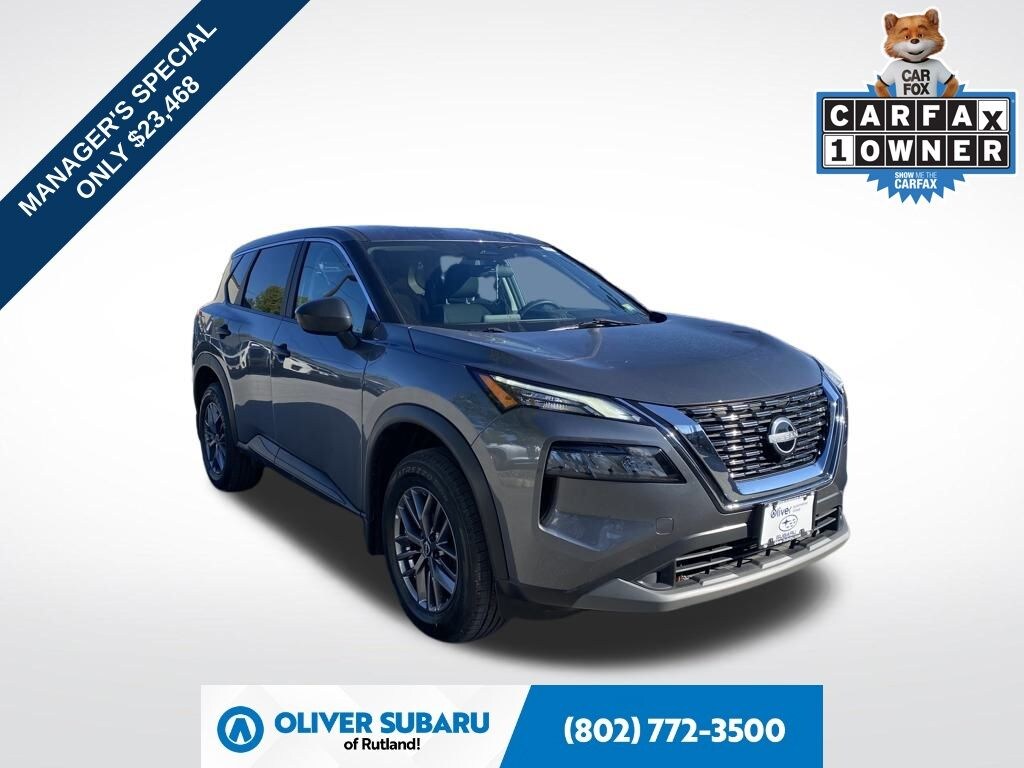 Oliver Subaru of Rutland is proud to present you with another True Market Priced Pre-Owned Vehicle. Transparent Pricing Of $ 24684 !! This 2023 Nissan Rogue S is loaded with the following Factory Options: AWD, 17" Aluminum Alloy Wheels, 4-Wheel Disc Brakes, AM/FM radio: SiriusXM, Auto High-beam Headlights, Blind Spot Warning, Fully automatic headlights, NissanConnect featuring Apple CarPlay and Android Auto, Rear Parking Sensors, and Steering wheel mounted audio controls AWD, 17" Aluminum Alloy Wheels, 4-Wheel Disc Brakes, AM/FM radio: SiriusXM, Auto High-beam Headlights, Blind Spot Warning, Fully automatic headlights, NissanConnect featuring Apple CarPlay and Android Auto, Rear Parking Sensors, Steering wheel mounted audio controls, 4 Speakers, 5.604 Axle Ratio, ABS brakes, Air Conditioning, Alloy wheels, AM/FM Radio, Black Splash Guards (Set of 4), Brake assist, Bumpers: body-color, Cloth Seat Trim, Delay-off headlights, Driver door bin, Driver vanity mirror, Dual front impact airbags, Dual front side impact airbags, Electronic Stability Control, First Aid Kit, Floor Mats w/1-Piece Cargo Area Protector, Four wheel independent suspension, Front anti-roll bar, Front Bucket Seats, Front Center Armrest, Front reading lights, Illuminated entry, Knee airbag, Low tire pressure warning, Occupant sensing airbag, Outside temperature display, Overhead airbag, Overhead console, Panic alarm, Passenger door bin, Passenger vanity mirror, Power door mirrors, Power steering, Power windows, Radio data system, Rear anti-roll bar, Rear seat center armrest, Rear side impact airbag, Rear window defroster, Rear window wiper, Remote keyless entry, Speed control, Speed-Sensitive Wipers, Split folding rear seat, Spoiler, Tachometer, Telescoping steering wheel, Tilt steering wheel, Traction control, Trip computer, and Variably intermittent wipers!!